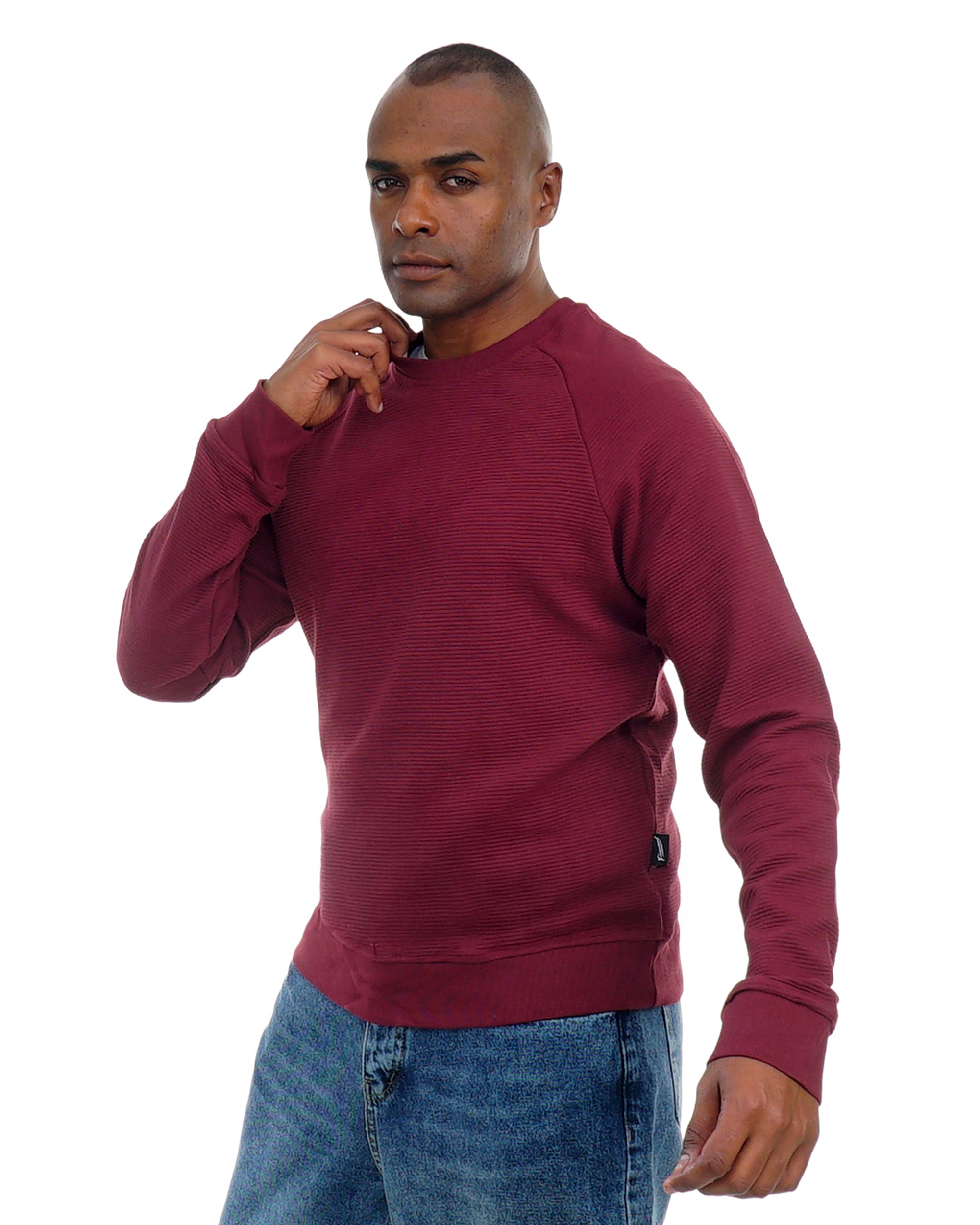 Men’s long sleeve crew neck pullover made from soft cotton blend fabric with a subtle textured finish. Designed for everyday comfort, casual wear and a clean modern look.